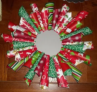 Otra propuesta es realizar coronas con papel estampados varios, rayados, floridos o con frases alusivas a navidad, preferentemente con los colores navideños rojo, verde y blanco.